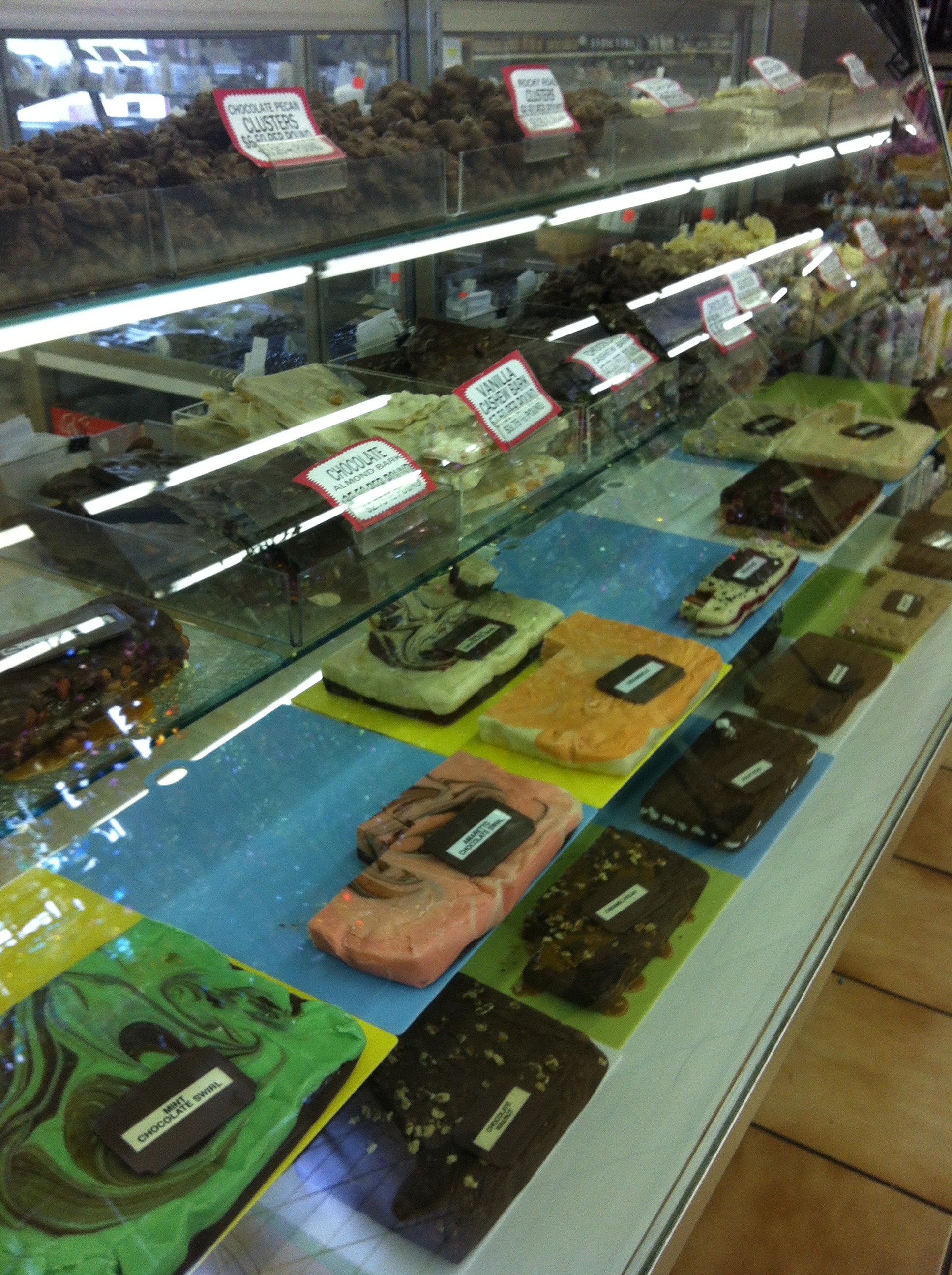 All these candies overwhelmed me! I bought half-a-pound of mint chocolate swirl. It was good!