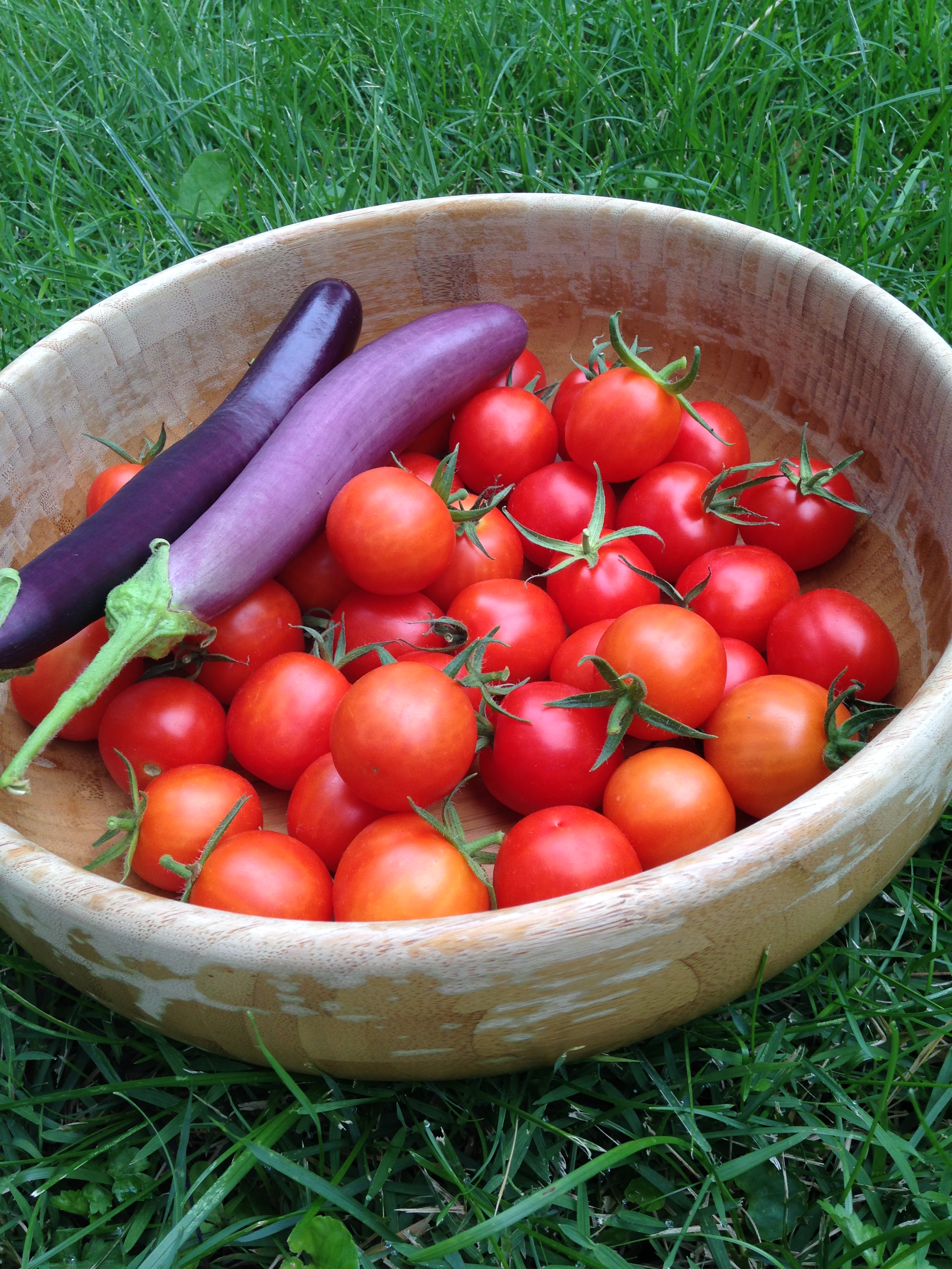 I’ve been enjoying garden fresh tomatoes for two weeks now. Today I was happy to see that two of my four eggplants are now ready too.
